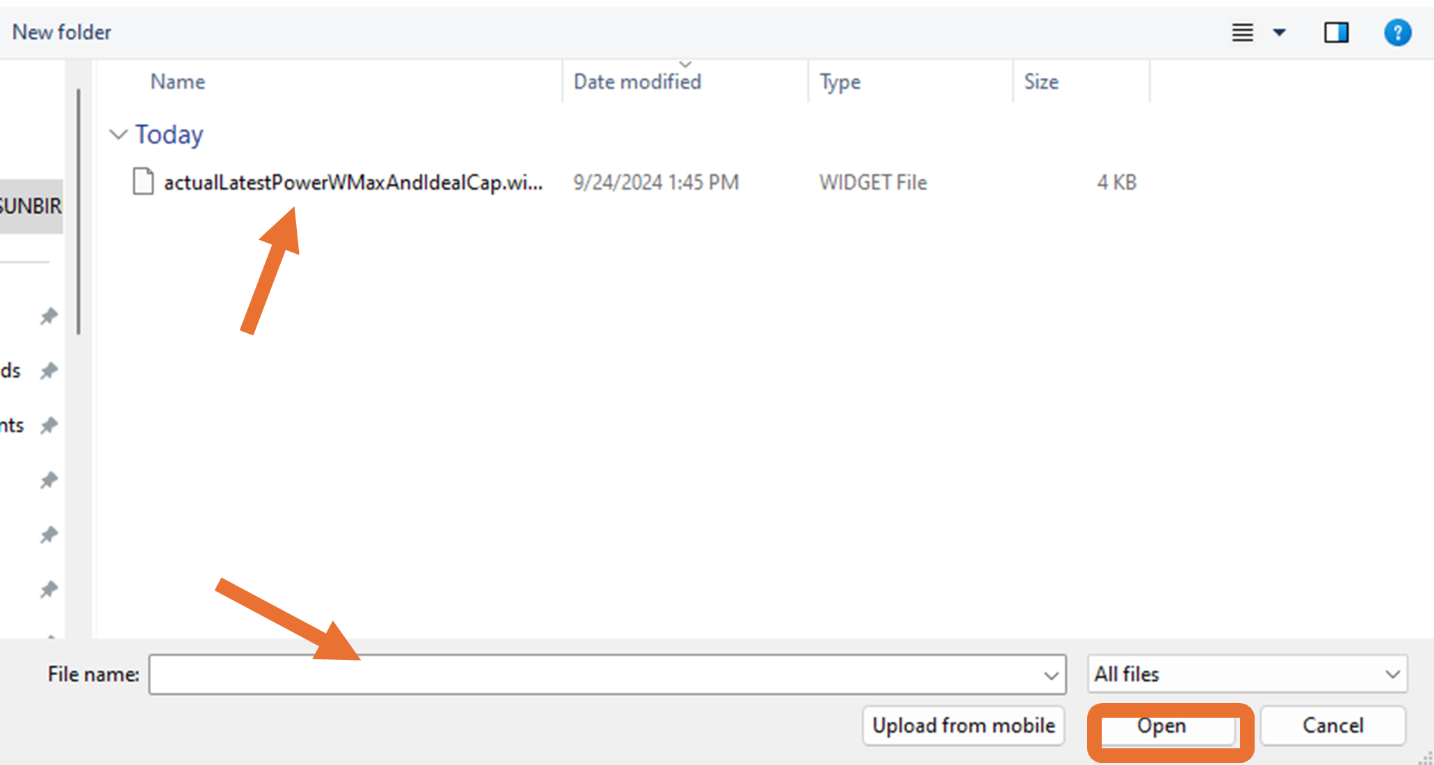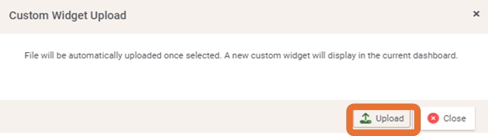 4. The Custom Widget Upload dialog will display. Locate the Chart Widget file provided by Sunbird Technical Support or downloaded from the Addons site here.