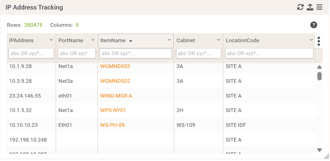 This SQL grid widget show what IP addresses are in use and where as well as the IP addresses that are still available.